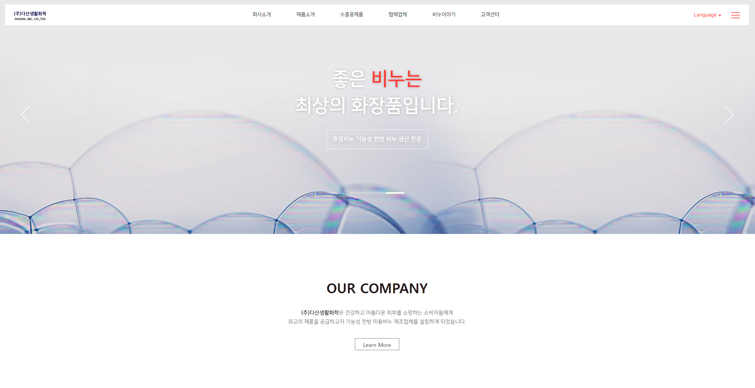 We have concluded a license with CHRISTIAN AUJARD in 2003 and have distributed the best functional beauty soap to department stores and stores all around the country. We have registered the quality guarantee mark (QA-2265), obtained the non-bacterial mark, received verification ISO 14001 (environment. business system), and contracted with consortiums at the Daegu Health University Industry Academic Cooperation focusing on the research of eco-friendly and high-quality functional beauty soap. We have concluded and supplied an OEM supply contract with large-sized construction companies, major companies, public institutions, etc. with a differentiated business system. We have established branches in Seoul, Busan, and Daejeon and registered for logistics by opening a Seoul logistics office. We are currently receiving foreign exchange from exports to the U.S., China, etc. based on the release of the Kitosan products in Japan. We are recently working on the development of highly functional aroma beauty soap with the Daegu Health University Industry Academic Cooperation and working for the development and patent application of our SCRUB BAR product using deep sea water.