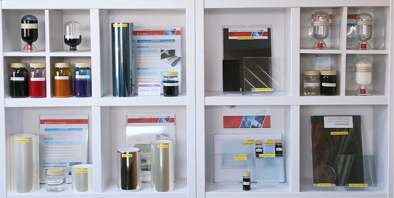 Chemo TEch N.GEL® 3D Nano-pattern film is a window film for architectural and interior use that has the function of protecting privacy of individuals and allows one to decorate interior design by processing 3D Nano patterns on existing heat blocking films. The heat blocking function cuts off the infrared heat ray coming from the sunlight and increases the transmission of visible light, so that it can secure a clear view in the room, maintain a comfortable indoor temperature, and reduce the air conditioning and heating. Our heat blocking film has the highest visible light transmittance of 70% and infrared ray cut off rate of 95%. 3D Nano pattern has a three dimensional pattern like a hologram on the heat blocking film and various printing designs can be applied on the film while customizing the size, pattern, and color to the taste of the user. Compared to existing heat block films, it can be widely applied and has an excellent aesthetic effect.