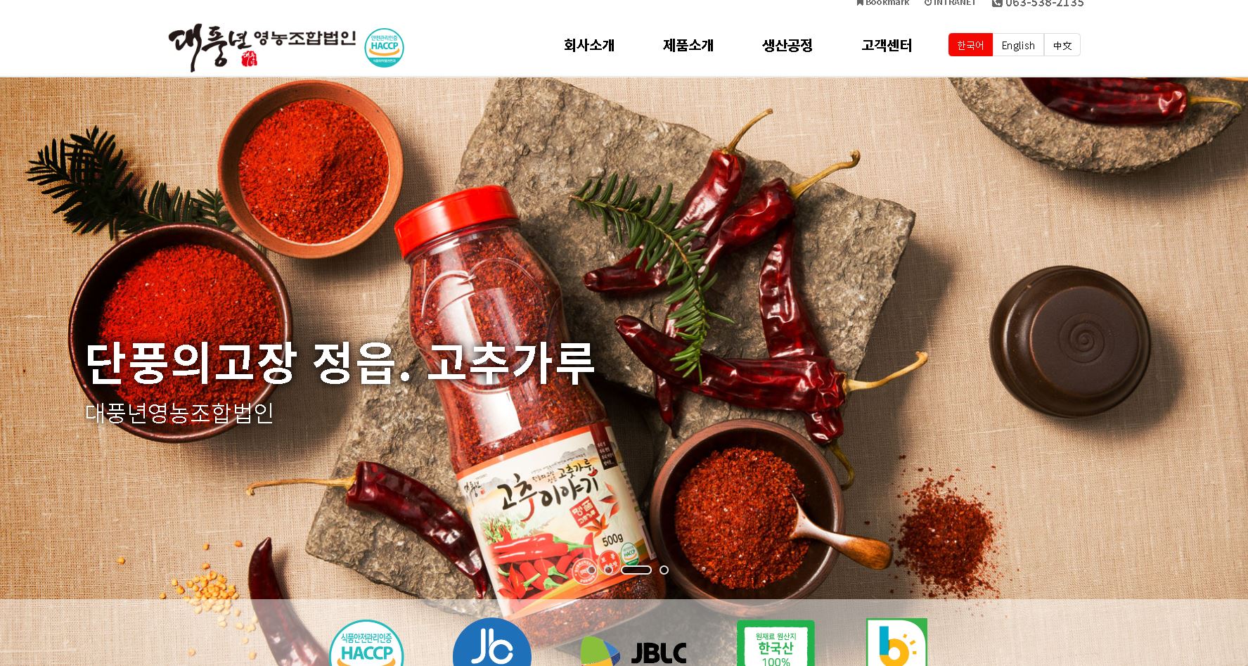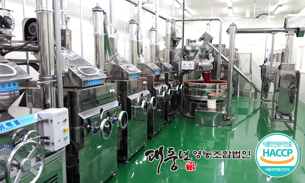 Since its establishment in 2010, it has been growing steadily since it started to distribute and sell peppers and other agricultural products, which are the representative agricultural products of Jeongeup area. Since 2014, it has specialized in manufacturing red pepper powder and has entered the manufacturing industry and made red pepper powder with a soul to make sales of 3,758 million Won As of 2016), contributing to the development of local communities. DAEPUNGNYEON CO.,LTD. The honesty of a food company is directly related to life. We will be your best partner by providing honest products with a honest heart. Founded in 2010, it began to distribute and sell local representative agricultural products such as peppers and other agricultural products, and entered the manufacturing industry in 2012, and in 2014, it is a good company that has slowly grown with local farmers and contributed to the development of the local community with the desperation to make red pepper powder with a soulful soul as a company specializing in red pepper powder manufacturing. We have been developing various processed foods based on peppers through continuous research, led by our main item, chili pepper story, and we plan and produce specialized high value-added products through storytelling. We have already commercialized jam jam using chili and tea smooth tea using red pepper seeds and are planning to launch various new products. In addition, for the first time in Korea, we have a great ambition to develop a map meter that derives the spicy taste of peppers through objective scientific measurement rather than sensual subjectivity through the technology capability enhancement project of leading companies in Jeollabuk-do, thereby leading the standardization of spicy taste. "Putting science in agricultural products" In order to realize the dream of a comprehensive agricultural product distribution business, we will take the lead in making more sophisticated and dense safe food.