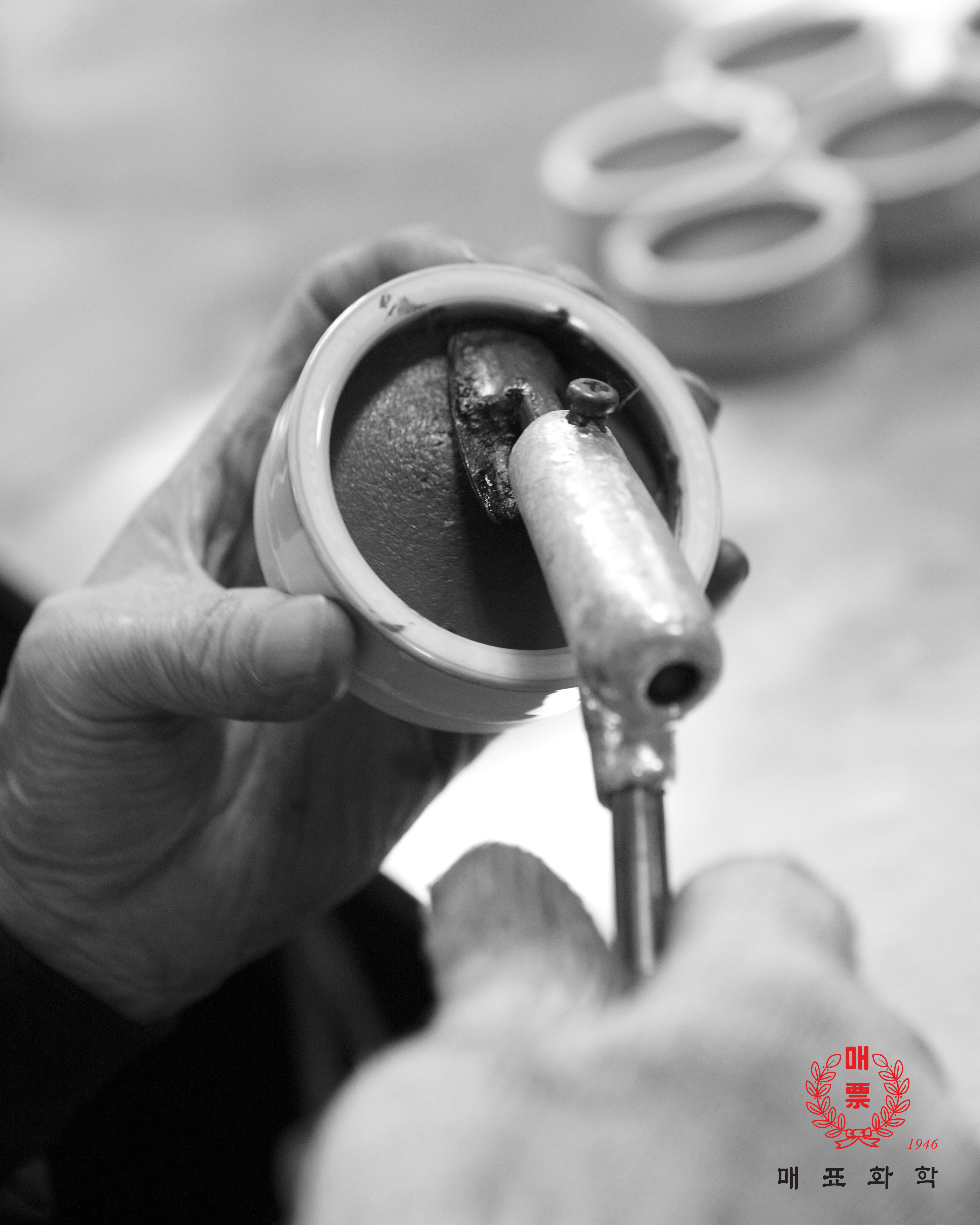 The main ingredint for the seal ink, mercuric sulfide, is a mercury compound that is scarlet red in color. In addition, the color of the castor oil is also red and is a type of non-drying oil. Ink paste suitable for stamps or seals were made by utilzing the characteristics of the ingredients that do not react to air, come off easily on paper due to high viscosity, less prone to change under heat and quick-drying with a low solidifying point.
