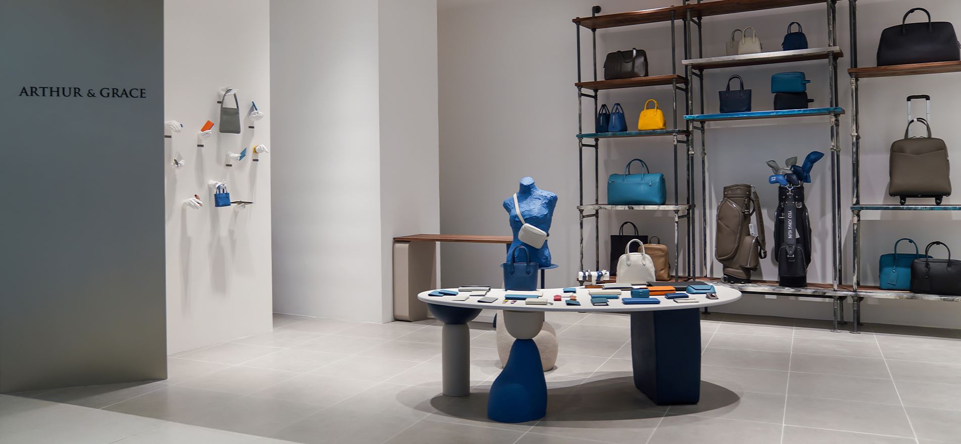 Arthur & Grace operates four boutique stores: Lotte Avenuel World Tower Branch, Lotte Department Store Dongtan Branch, Hyundai Department Store Pangyo Branch, and The Hyundai Seoul.