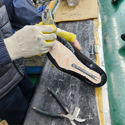 Our factory, located within the Busan Footwear Innovation Hub, is equipped with advanced facilities and skilled artisans, enabling us to oversee every stage from design and prototyping to mass production. Together with our dedicated team of footwear manufacturing specialists and a certified in-house R&D department recognized by the Korea Industrial Technology Association, we continuously pursue technological innovation and quality enhancement.